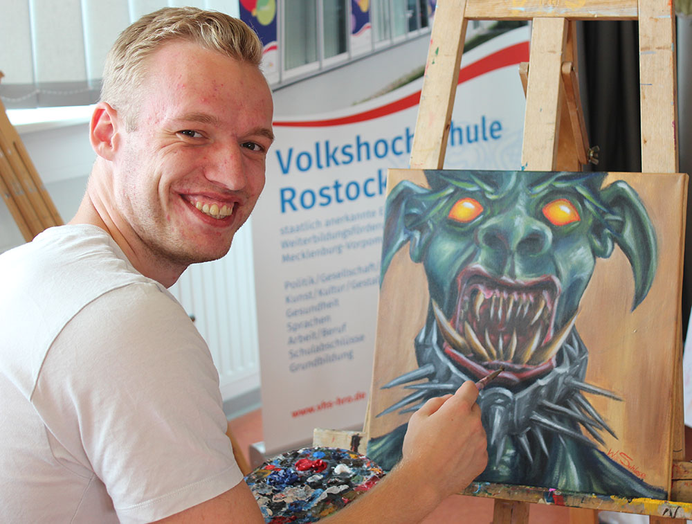 Ich lebe als freischaffender Künstler in Rostock und bin Begründer von KreatiVision.org. Ich bin als Dozent an verschiedenen Volkshochschulen und öffentlichen Schulen tätig. Unter anderem führe ich Projektarbeiten allein oder zusammen mit Kindern durch. Viele Projekte werden in enger Zusammenarbeit mit dem Verein Cavemus e.V. und mit der Volkshochschule ins Leben gerufen. Wenn du wissen möchtest was ich so male und zeichne, dann schau einfach in der Galerie nach.